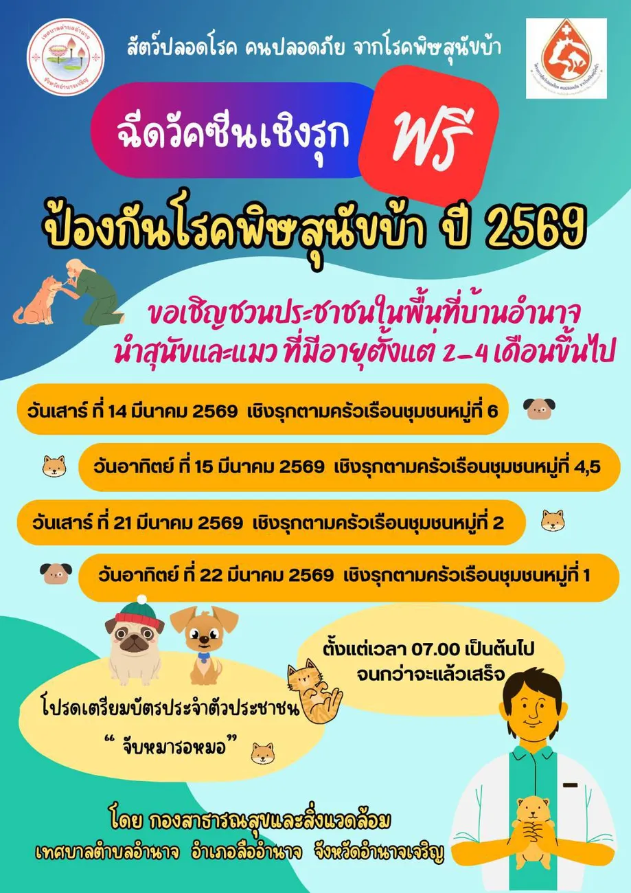 ฉีควัคซีนเชิงรุก ป้องกันโรคพิษสุนัขบ้า ปี 2569