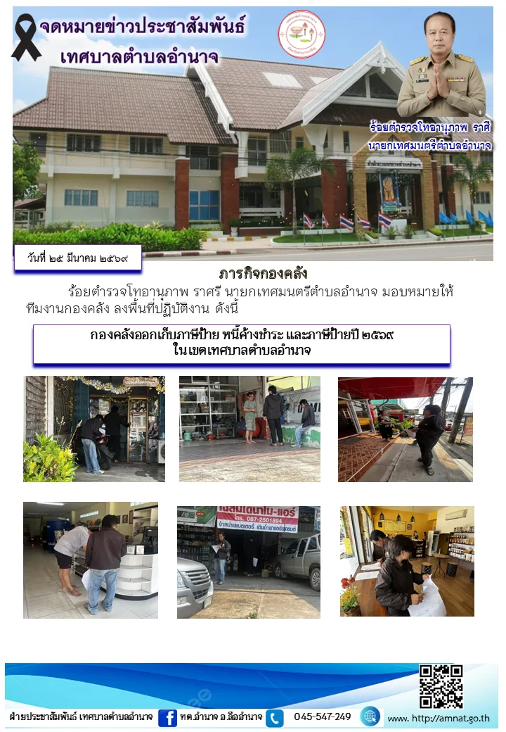 กองคลังออกเก็บภาษีป้าย หนี้ค้างชำระ และภาษีป้ายปี ๒๕๖๙ ในเขตเทศบาลตำบลอำนาจ