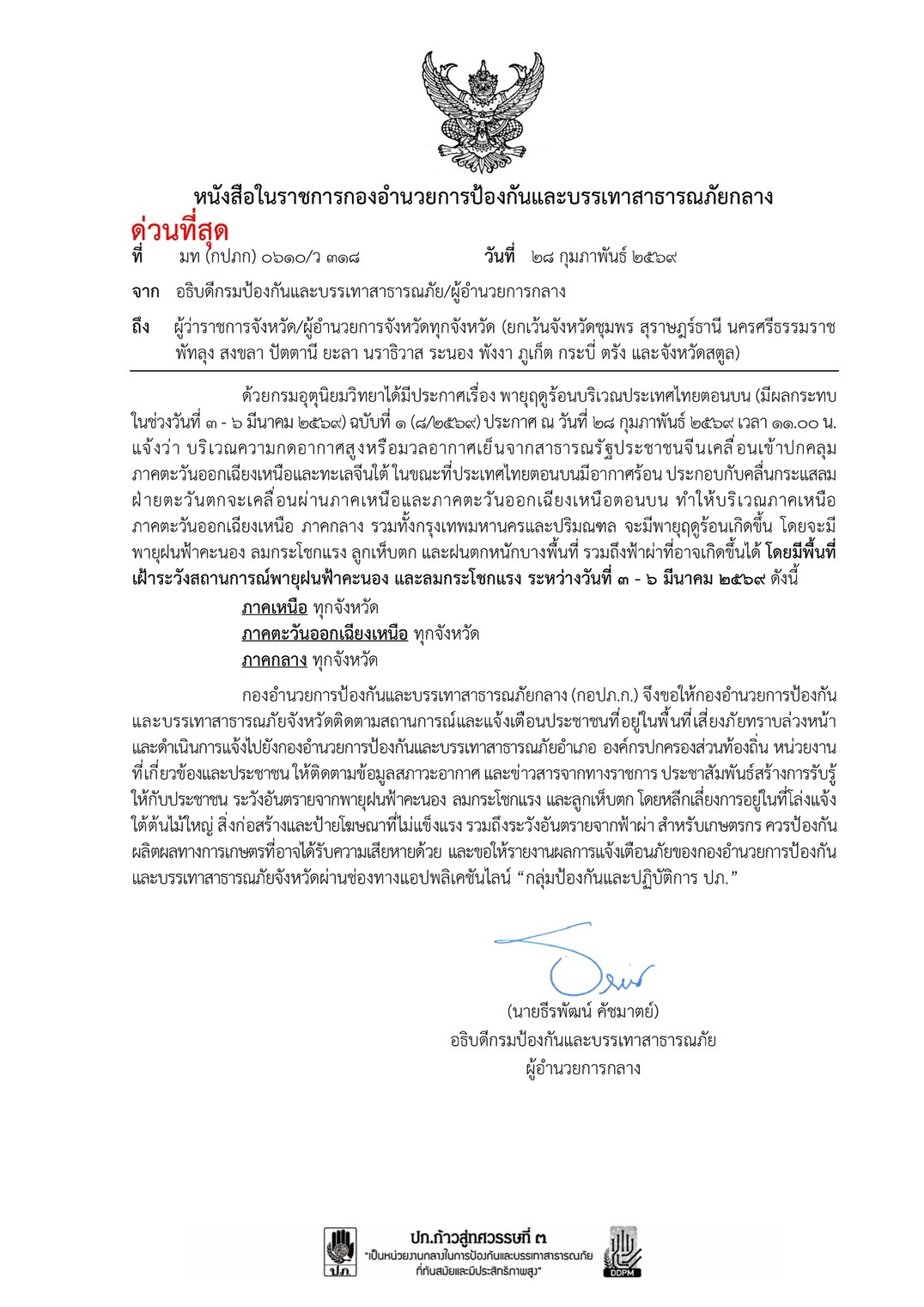 ประชาสัมพันธ์ แจ้งเตือนพายุฤดูร้อน บริเวณภาคตะวันออกเฉียงเหนือตอนบน มีผลกระทบถึงวันที่ 3-ุ6 มีนาคม 2569 มีพายุฝนฟ้าคะนอง ลมกระโชกแรงและมีฝนตกหนักบางแห่ง