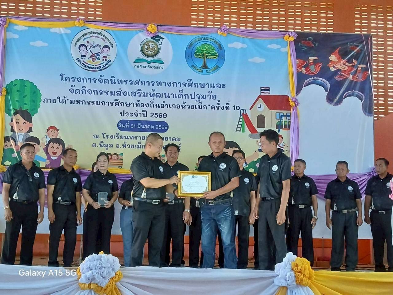 ภาพที่เกี่ยวข้อง วันที่ 31 มีนาคม 2569 นายวีระเดช โพธิ์ศรีราช นายกองค์การบริหารส่วนตำบลโนนสะอาด มอบหมายให้ นายวิรัตน์ สมคำศรี รองนายก อบต.โนนสะอาดและนายวัชรินทร์ ภูลายเรียบ เลขานุการฯนายก องค์การบริหารส่วนตำบลโนนสะอาดพร้อมด้วย ผู้อำนวยการกองการศึกษาและคณะครู เข้าร่วมโครงการจัดนิทรรศการศึกษาและกิจกรรมส่งเสริมพัฒนาเด็กปฐมวัย ภายใต้ มหกรรมการศึกษาท้องถิ่น อำเภอห้วยเม็ก ครั้งที่ 10 ประจำปี 2569 ณ. โรงเรียนทรายมูลพิทยาคม อำเภอห้วยเม็ก จังหวัดกาฬสินธุ์