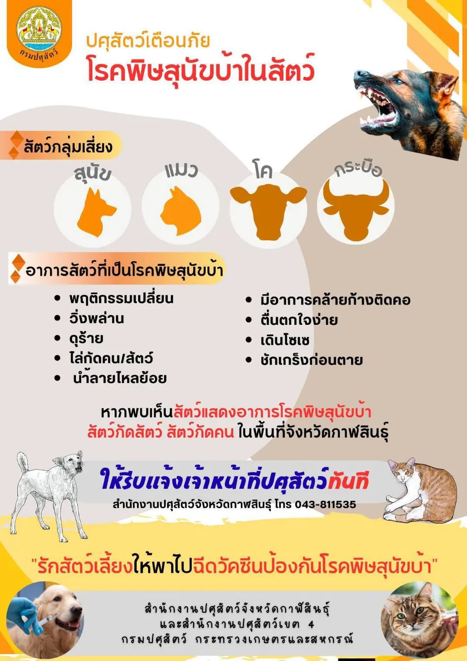 ประชาสัมพันธ์ โรคพิษสุนัขบ้าในสัตว์ ในพื้นที่จังหวัดกาฬสินธุ์